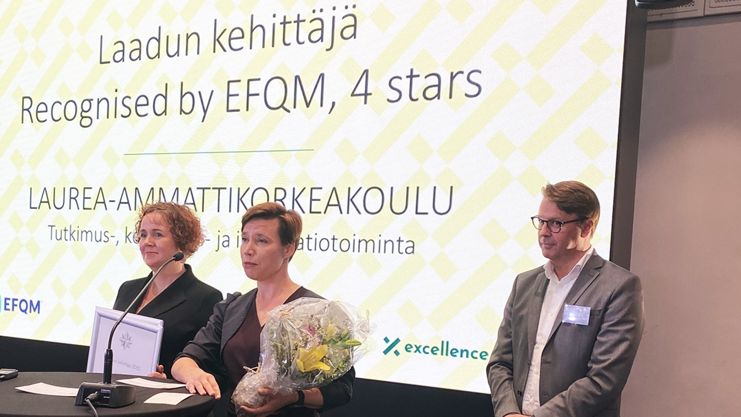Laurean TKI-toiminta palkittiin Recognised by EFQM -tunnustuksella Laatupäivässä