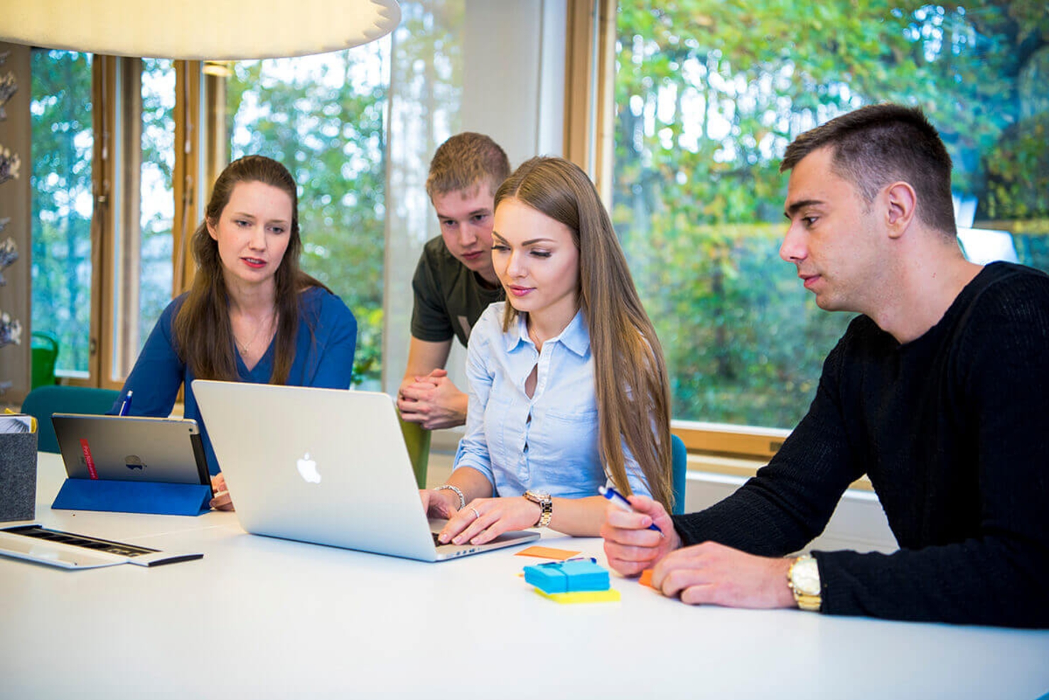 Opintoihin kuuluu myös opinnäytetyö (30 opintopistettä). Voit valita sinua kiinnostavan aiheen ympäriltä laajan kehitysprojektin tai portfolion, joka koostuu opintojen aikana kootuista pienemmistä osista.