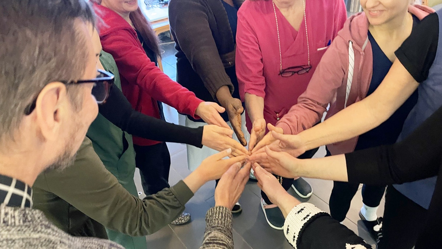 Esihenkilöiden muutosvalmennus toteutettiin kevään 2024 aikana kahdessa osassa. Ensimmäiset tapaamiset pidettiin hoivakotien omien esihenkilöiden kesken ja toinen tapaaminen yhdessä kaikkien hoivakotien esihenkilöiden kanssa. Ensimmäisellä kerralla käsiteltiin mm. motivaation ja tiimin muodostumista, psykologista turvallisuutta monimuotoisessa työyhteisössä ja tiimiroolien tunnistamista. Toisen tapaamiskerran tavoitteena oli tukea eri hoivakotien esihenkilöiden verkostoitumista, tuottaa vertaistukea jakamalla kokemuksia päivittäisen johtamisen haasteista sekä jakaa hyväksi koettuja toimintamalleja lääkkeettömien hoitomuotojen käytössä monikulttuurisissa työyhteisöissä.