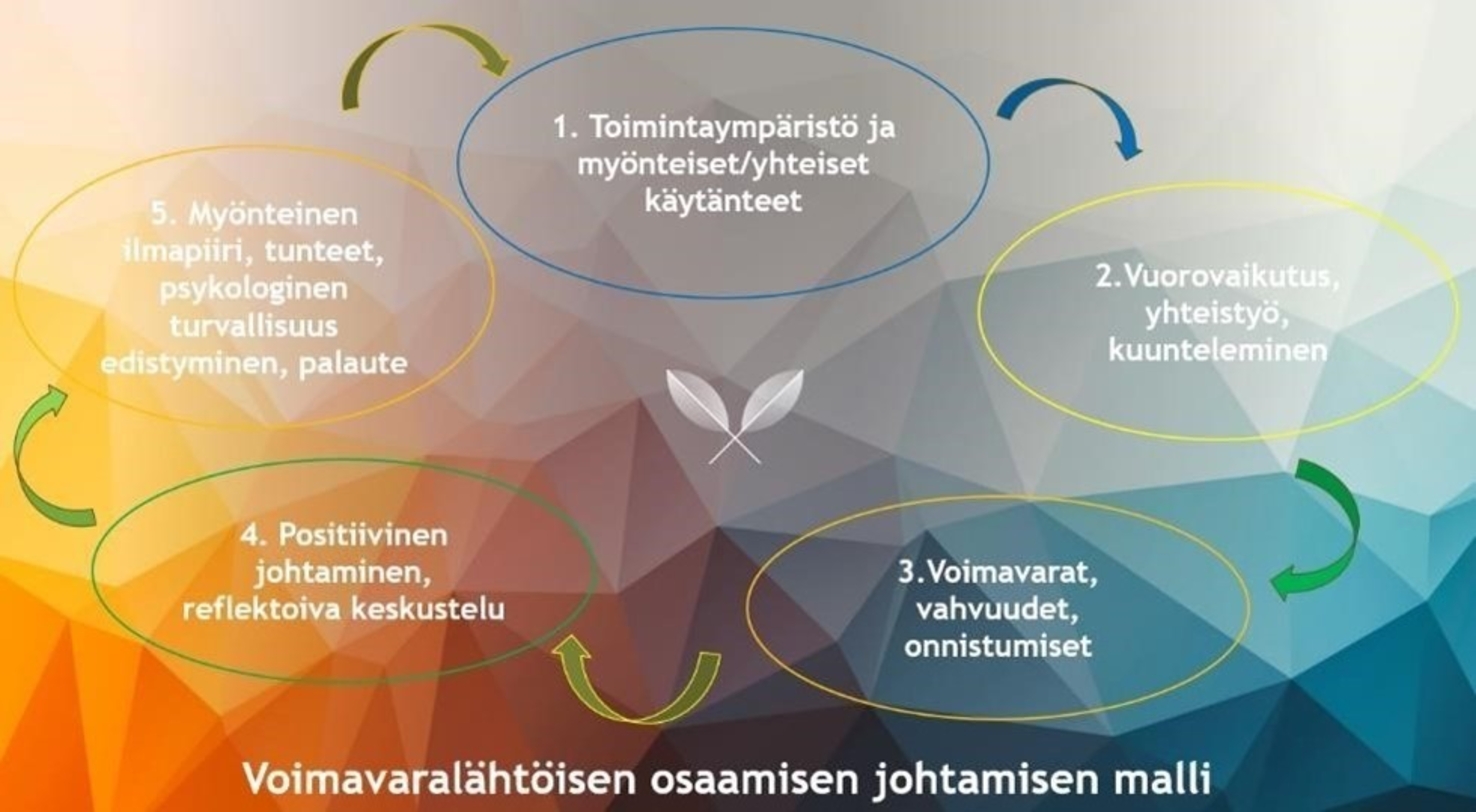 Laurea ammattikorkeakoulun Voimavaraistavien työtapojen johtaminen ja kehittäminen sosiaali- ja terveysalalla - koulutusohjelman YAMK-opiskelija Maria Väätäinen tutki osaamisen johtamisen nykytilannetta työterveyshuollon organisaatiossa ja lähiesihenkilöiden työssä. Tavoitteena oli kehittää voimavaralähtöistä osaamisen johtamista, mikä on varsin uusi lähestymistapa osaamisen johtamisessa. Voimavaralähtöisiä johtamisen tapoja on esimerkiksi positiivinen-, valmentava -, dialoginen- tai voimaannuttava johtaminen.