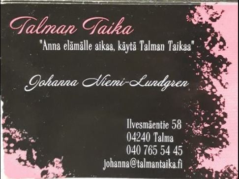 Toukokuussa 2018 Johanna perusti toistaiseksi siivousalaan keskittyvän yrityksen, Talman Taian. Yritysmuodoksi Johanna valitsi toiminimen.