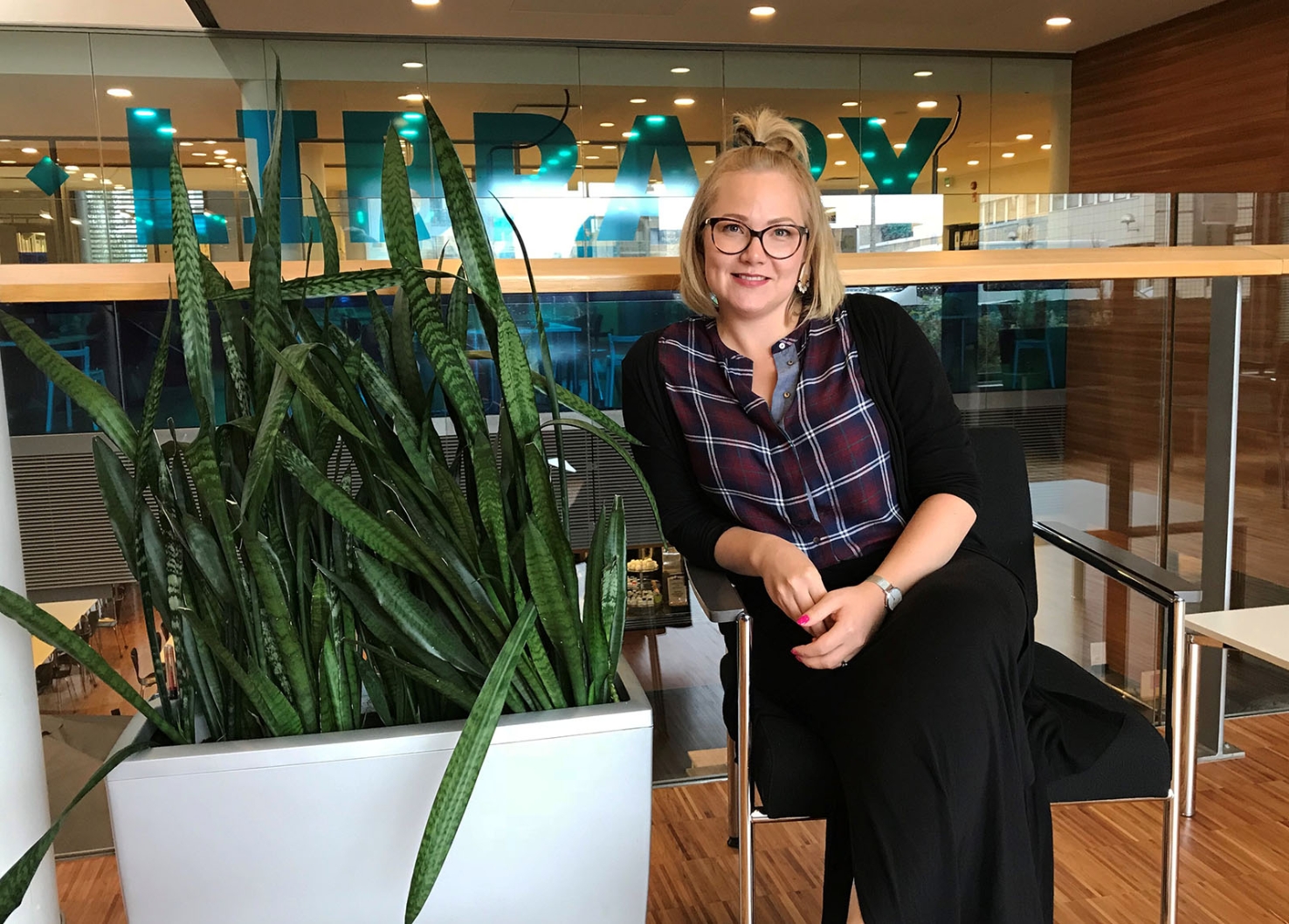 Opiskelijahaastattelussa voimavaraistavien työtapojen johtaminen ja kehittäminen sosiaali- ja terveysalalla -YAMK-koulutuksessa opiskeleva Helmi Kallio.