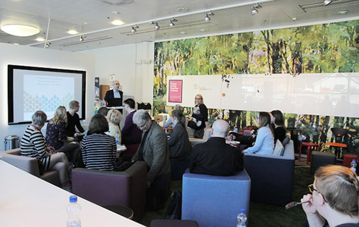 Kiinteistöalalla vallitsee tällä hetkellä työvoimapula ja työmahdollisuuksia löytyy monipuolisesti erilaisista työtehtävistä, kuten mm. työympäristöjen suunnittelusta muuttuvan työn tarpeisiin. Tilaisuudessa opiskelijat pääsivät kuulemaan työtilanteesta itse yritysten edustajilta ja jopa työmahdollisuuksista keskusteliin vilkkaasti.