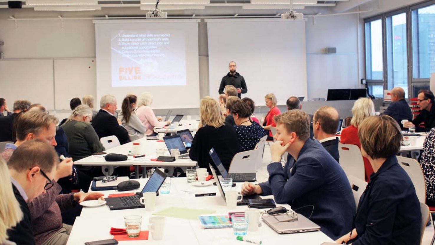 Headain perustaja ja hallituksen puheenjohtaja Harri Ketamo ja liiketoiminnan kehitysjohtaja Anu Passi-Rauste esittelivät tekoälyä ja sen Microcompetencies-käyttöliittymää, jossa työseminaarin osallistujat pääsivät testaamaan, miten oma osaaminen vastaa työelämän kysyntään ja miltä omanlainen osaamiskartta näyttäisi.
