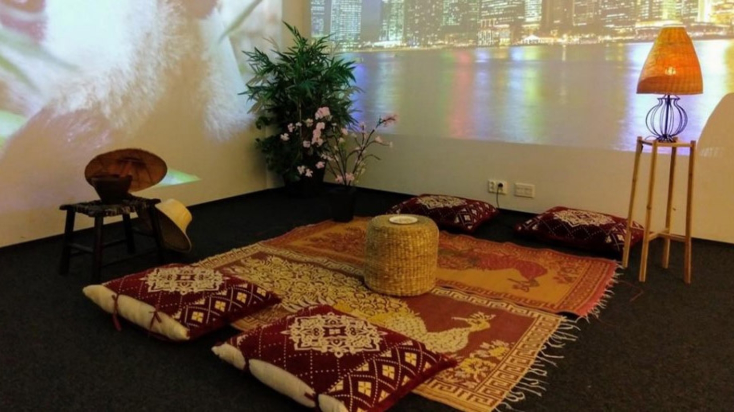 ”Työskentelin Sheidan kanssa, joka on ennestään työkaverini. Tarkoituksena oli rakentaa hänelle muistoja tuova tila, paikka missä nuorempana hän joi teetä perheensä kanssa. Aistien- tilasta löytyi kaikki tarvittava. Mausteet haju muistelua varten, matot, tyynyt, projektorit ja jopa teekupit sopivat kuulemma täydellisesti kyseiseen muisteluun. Sheida oli todella iloinen ja otettu kokonaisuudessaan tehtävästä ja kertoi minulle todella paljon Iranin historiasta ja mitä kaipaa sieltä, mutta miksi ei myöskään enää haluaisi asua siellä.” Marita Kinnunen