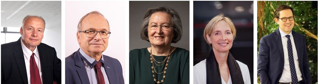 Kuvassa vasemmalta rehtorit Jouni Koski, Laurea-ammattikorkeakoulu, Jan Celco, UNIZA , Maria de Lurdes Rodrigues, ISCTE, Sylvi Heuchemer, TH Köln, Gilles Roussel, Universite Gustave Eiffel
