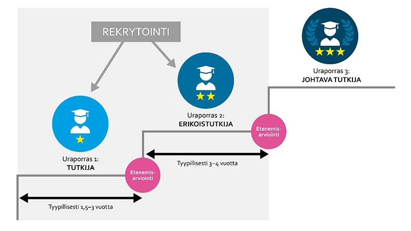 Urapolulla tutkijan on mahdollista edetä uraportailla ennakkoon määriteltyjen kriteerien perusteella.
