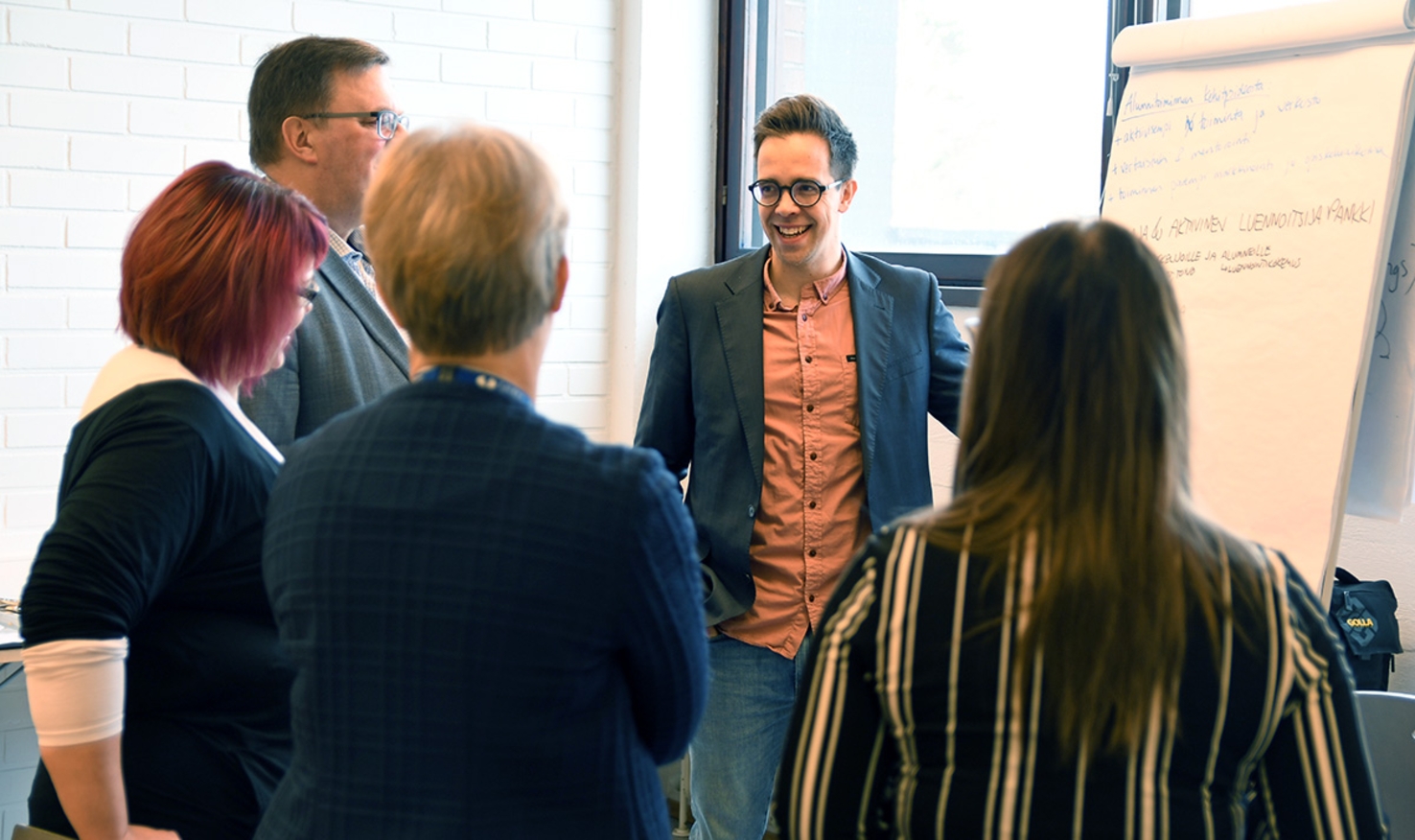 Tradenomiopiskelijat ja liiketalouden ammattilaiset pohtivat yhdessä keinoja Laurean liiketalouden koulutuksen kehittämiseksi entistä työelämälähtöisemmäksi.