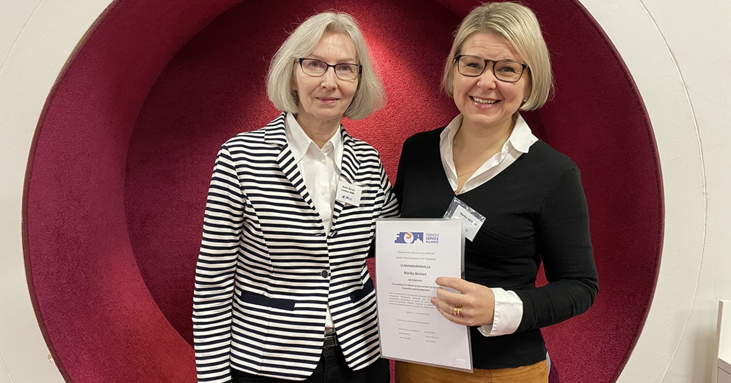 Marika Järvisen YAMK-opinnäytetyö sai Finnish Service Alliancen Vuoden palvelututkielma -kilpailussa kunniamaininnan