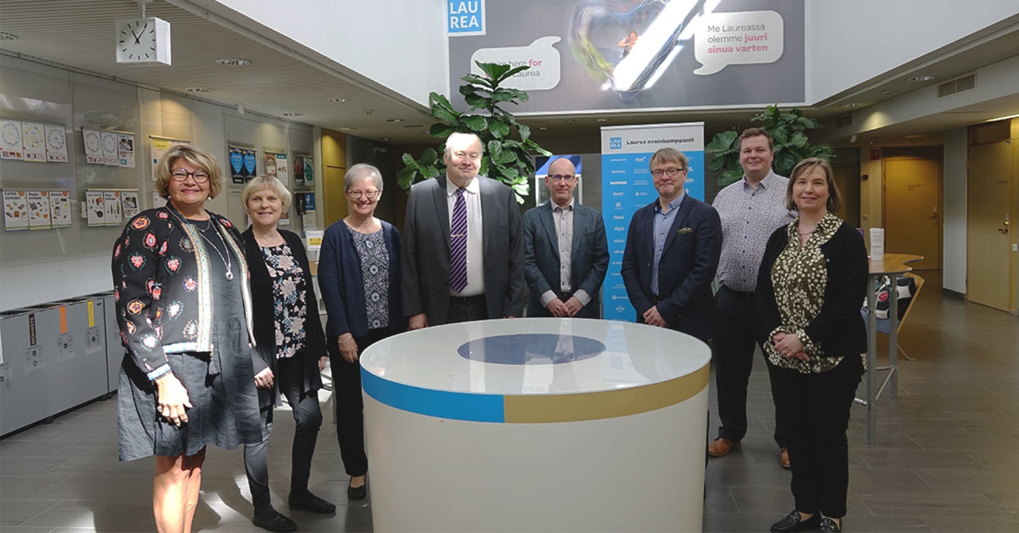 Newsecin edustajat tapasivat Laurean rehtori Jouni Kosken ja muuta Laurean henkilökuntaa toukokuussa Laurean Leppävaaran kampuksella.