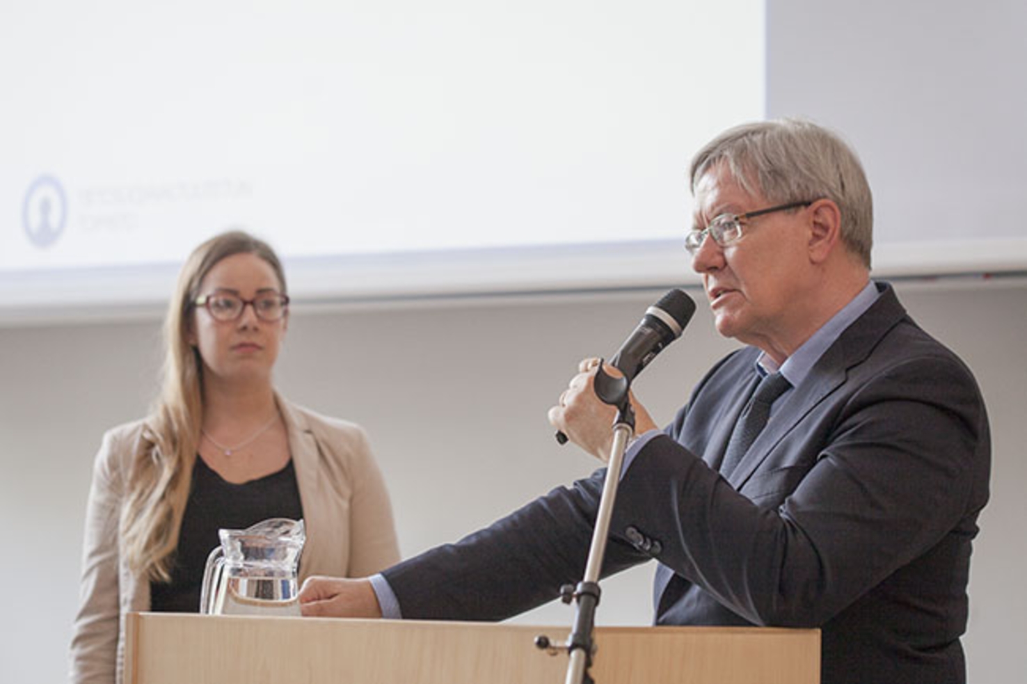 Keskiviikon seminaarin pääpuhujana vieraili tietosuojavaltuutettu Reijo Aarnio. Tietosuoja-asetuksen ja sitä täydentävän kansallisen lainsäädännön valmistelussa tiiviisti mukana oleva Aarnio esitteli kuulijoille uudistuksen taustaa: