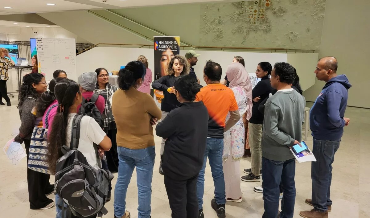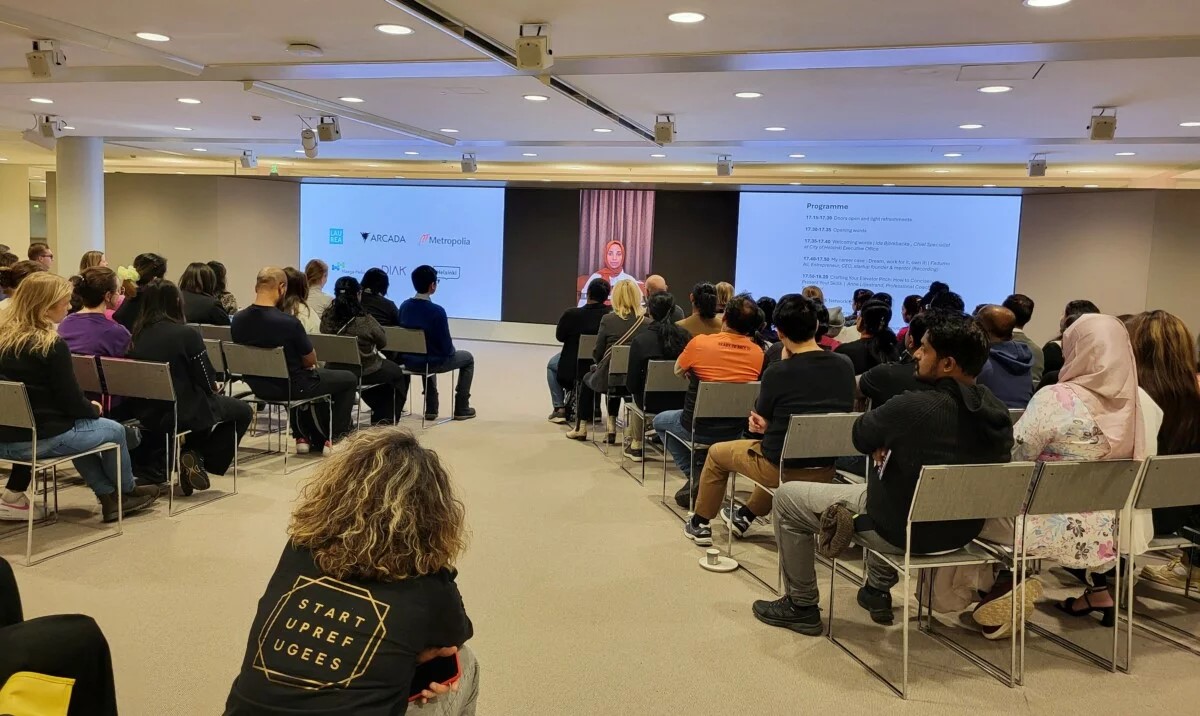 After the speeches, alumni had the chance to explore pop-up stands offering career support and advice. The stands featured information from Kielibuusti, Arcada Career Services, the SIMHE project, Uusimaa TE Services, Helsinki Adult Education Center, Startup Refugees network, and the City of Helsinki.