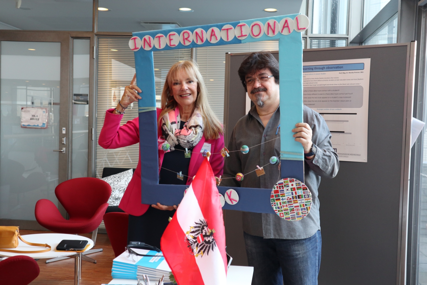 Researchers Monika Prenner and Michael Semeliker from University College of Teacher Education in Austria presented an eye-tracking device. To build good relations with students and to get their attention teachers should keep eye contact as much as possible. Unfortunately, many do not do that and instead, they look at the floor and are focused on themselves. “We invented glasses with a camera which are connected to a computer. When a teacher wears the glasses, we can see and measure his eye contact with students. Therefore we can give feedback, we can encourage the teacher to increase the eye contact”, said Monika Prenner during the poster session.