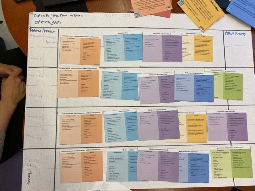 Various ways of learning are presented in each card. Those are placed in storyboard template to build up visual manuscript for the study unit/ course. In each card there is a description of how the named way of learning can be used in class and online teaching. To fill in learning types -form at the beginning and at the end of workshops is it easy to see what was the starting point and how the study unit/ course has developed during the workshop.
