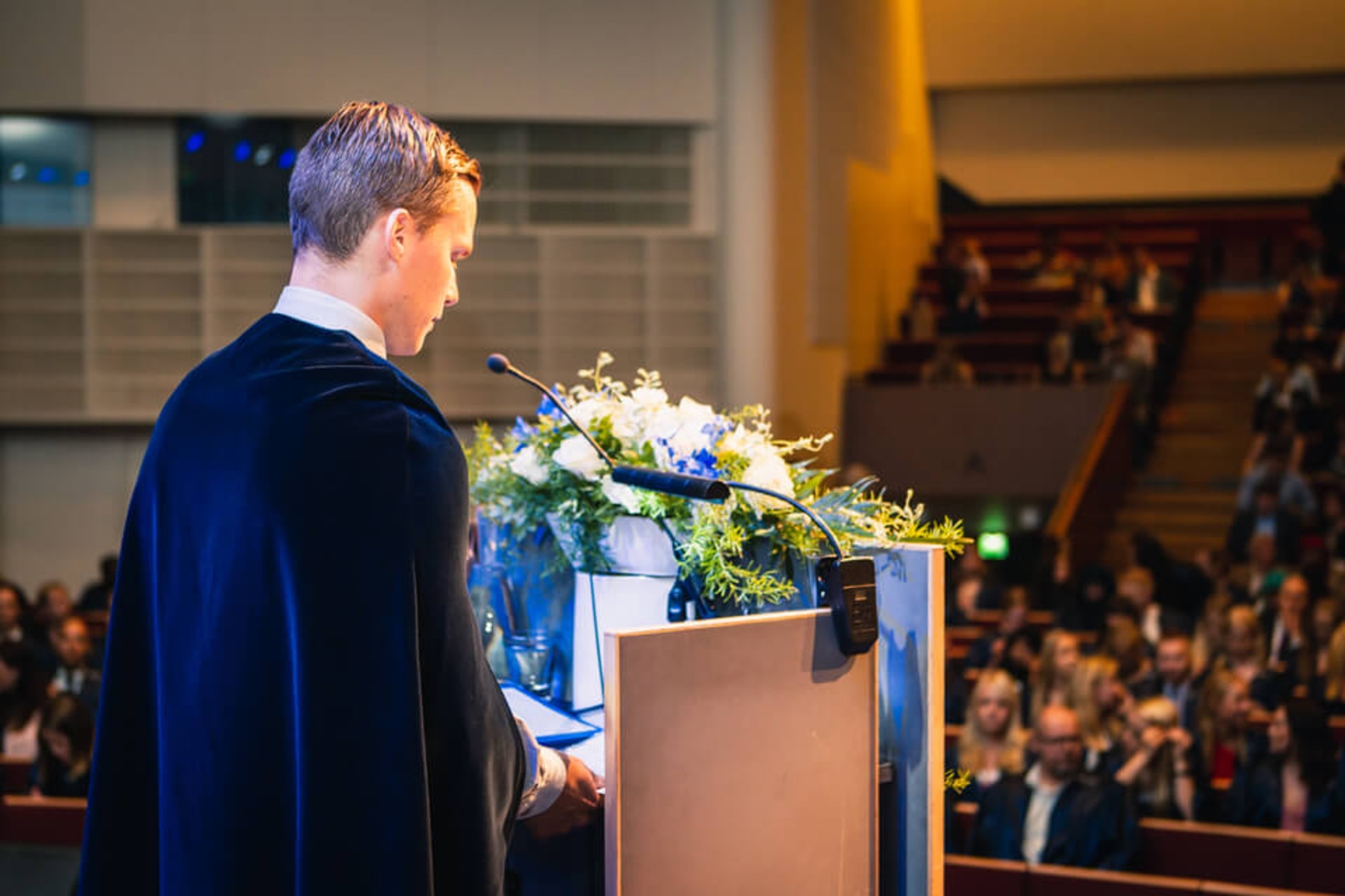 The graduates are also addressed by a Laurea alumni who is distinguished in working life and a representative of the university's stakeholders. The degree certificates are handed out to the graduating students after the ceremony.