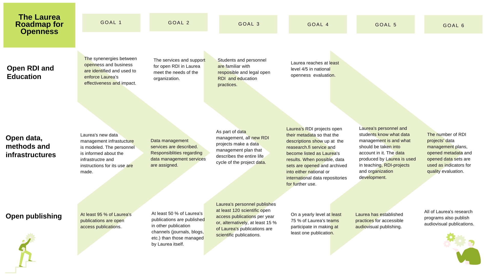 Responsible research, development, innovation (RDI) and open learning belong to Laurea's guiding principles. The Laurea Roadmap for Open RDI and Education (subsequently: Laurea Roadmap for Openness) defines Laurea's principles and objectives regarding openness.