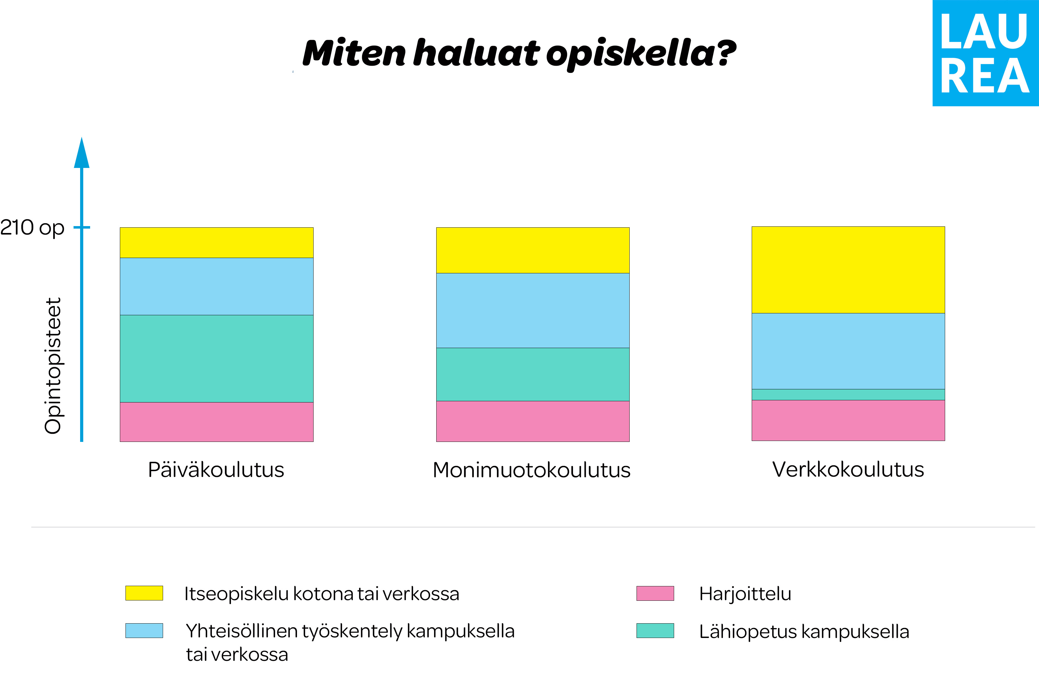 Verkko-opiskeluun tarvitset tietokoneen hyvin toimivalla verkkoyhteydellä sekä perustaidot käyttää näitä. Laureassa on käytössä Canvas-verkko-oppimisympäristö, jossa opiskelu pääsääntöisesti tapahtuu. Verkko-opinnot voivat sisältää monenlaisia eri tapoja opiskella: