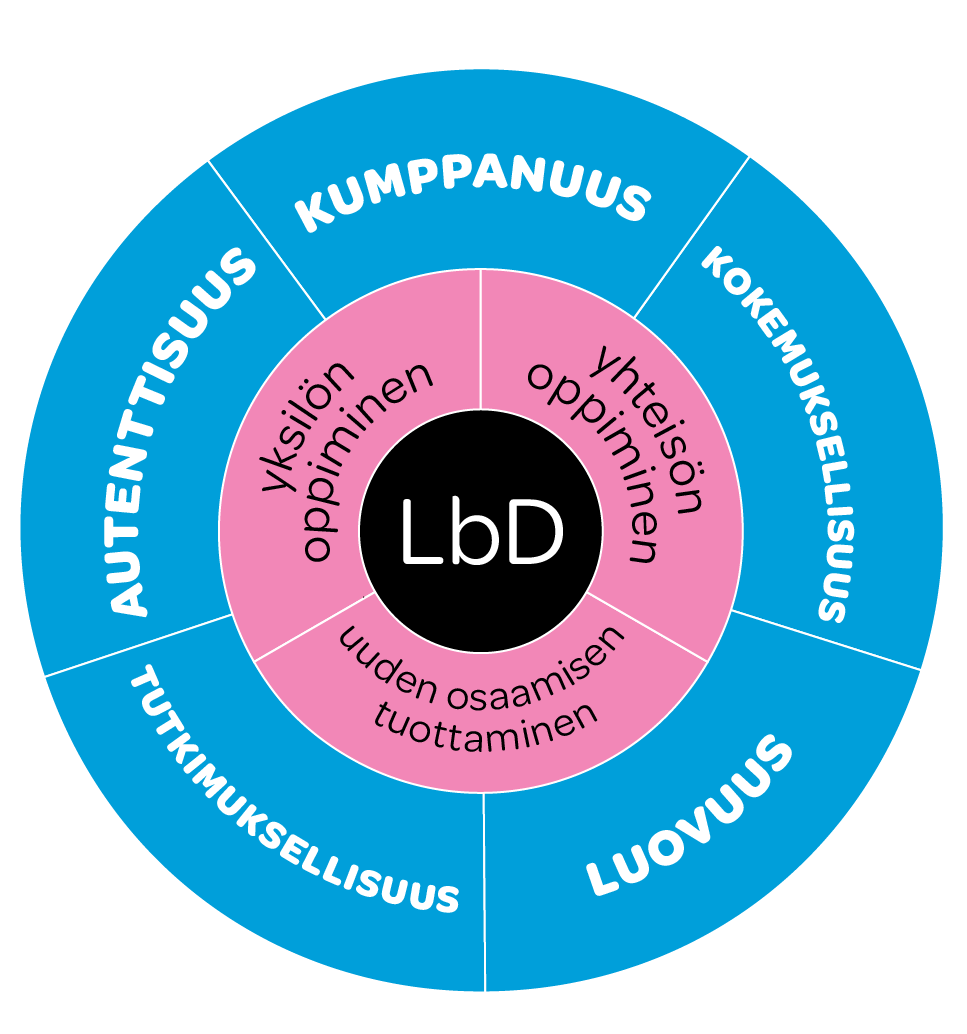 Laurealainen pedagogiikka perustuu kehittämispohjaisen oppimisen malliin. Käytämme siitä lyhennettä LbD (englanniksi Learning by Developing). Tutustu myös pedagogisiin linjauksiimme sekä pedagogiseen ohjelmaamme vuosille 2023 - 2025.